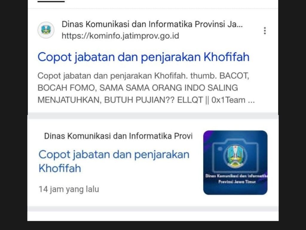 Serangan siber ini bikin heboh publik setelah muncul artikel berjudul “Copot Jabatan dan Penjarakan Khofifah” yang tayang selama beberapa jam sebelum akhirnya dihapus.
