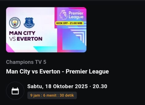 Olahraga Link Live Streaming Manchester City vs Everton, Liga Inggris 2025/2026 Malam Ini Oleh Ma'rifah Nugraha • 18.10.2025 • 9 Dilihat • Mustikatimes.com – Manchester City akan menjamu Everton di lanjutan Liga Inggris 2025/2026. Laga seru ini digelar...
