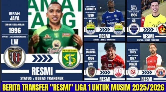 mustikatimes.online– Bursa transfer Liga 1 2025/2026 mulai memanas! Sejak sepekan terakhir, klub-klub menunjukkan pergerakan signifikan dalam mencari pemain baru.