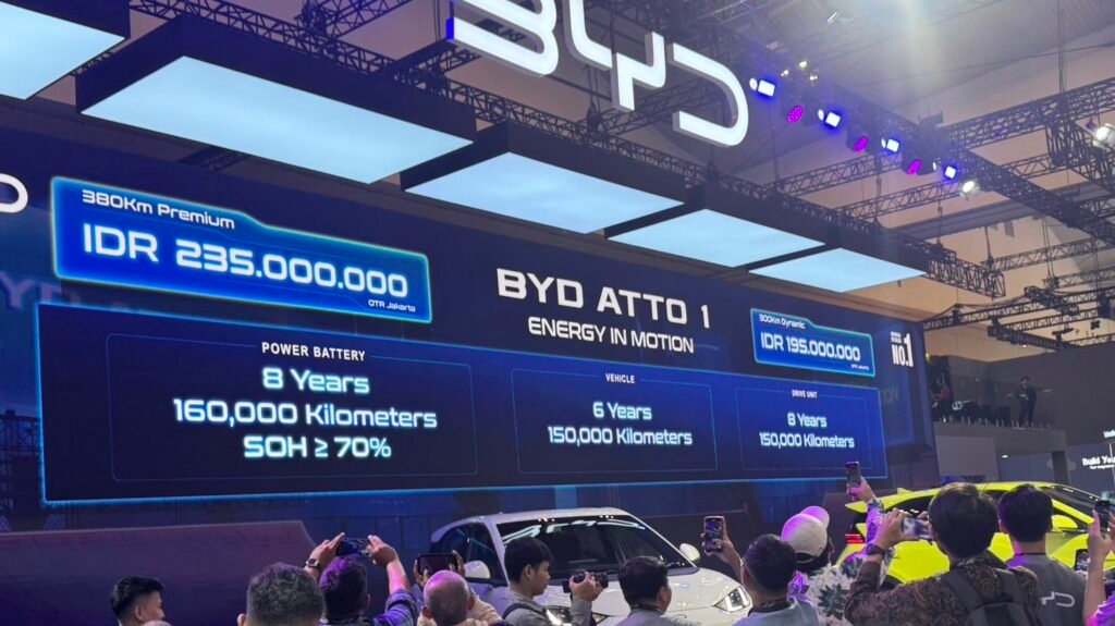 mustikatimes.online – Pabrikan kendaraan listrik raksasa asal Tiongkok, BYD, membuat gebrakan besar di ajang Gaikindo Indonesia International Auto Show (GIIAS) 2025. BYD secara resmi meluncurkan mobil listrik terbarunya, BYD Atto 1, dengan harga yang sangat kompetitif, yakni mulai dari Rp195 juta.