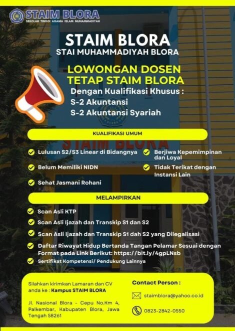 Berita Lowker Wawasan & Edukasi Lowongan Dosen Tetap STAI Muhammadiyah Blora: S2 Akuntansi & Akuntansi Syariah Oleh Nur Khoirunnisa • 16.09.2025 • 7 Dilihat • BLORA, MUSTIKATIMES.COM – Apakah Anda seorang profesional di bidang Akuntansi atau Akuntansi Syariah dengan kualifikasi...