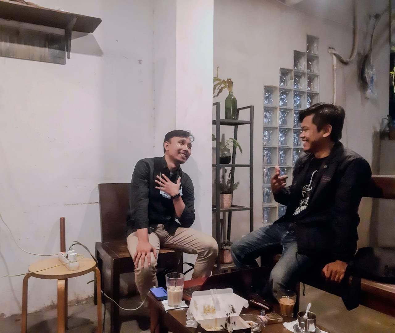 Diskusi dan menikmati kopi. (Foto : Yusran/mustikatimes.online)