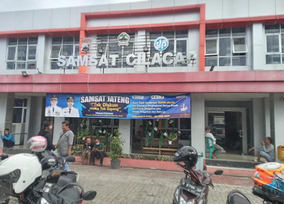 Cilacap, mustikatimes.online- Kantor Sistem Administrasi Manunggal Satu Atap ( Samsat ) Kabupaten Cilacap dipenuhi masyarakat lokal wajib pajak yang ingin memanfaatkkan Program Pemutihan Pajak. ( 24 / 4 / 2025 )