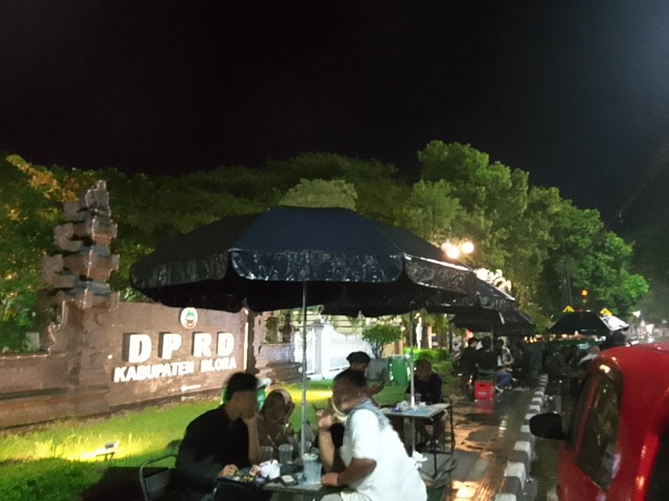 Di latar belakang, tulisan “DPRD KABUPATEN BLORA” terpampang jelas, menegaskan lokasi pengambilan gambar. Keberadaan tempat nongkrong yang strategis di depan gedung pemerintahan seperti ini seringkali menjadi cerminan dinamika kota. Ini bisa menjadi tempat bagi warga untuk bersantai setelah seharian beraktivitas, bertemu dengan teman, atau bahkan sekadar menikmati keramaian kota.