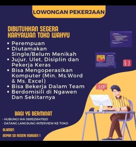 Berita Ekonomi & Bisnis Lowker Lowongan Kerja Toko Wahyu Ngawen: Kesempatan Karir untuk Staf Toko! Oleh Nur Khoirunnisa • 07.10.2025 • 4 Dilihat • Blora, Mustikatimes.com – Dibutuhkan Segera! Toko Wahyu yang berlokasi strategis di Ngawen, Jawa Tengah, sedang...