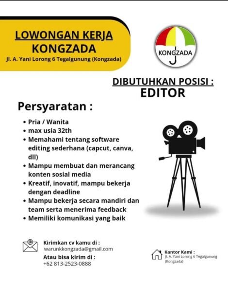 Berita Lowker Lowongan Kerja Editor Konten Media Sosial di Kongzada Oleh Nur Khoirunnisa • 16.09.2025 • 8 Dilihat • mustikatimes.online – Mencari lowongan kerja editor di Tegalgunung, Blora? Kongzada sedang mencari individu kreatif dan...