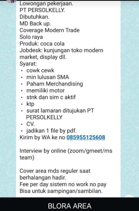 Berita Lowker [LOKER SOLO RAYA & BLORA] Lowongan Kerja MD Back Up di PT PERSOLKELLY – Produk Coca Cola Oleh Nur Khoirunnisa • 17.10.2025 • 5 Dilihat • MUSTIKATIMES.COM – PT PERSOLKELLY, perusahaan penyedia solusi tenaga kerja terkemuka, membuka kesempatan kerja menarik bagi...