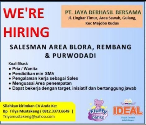 Berita Lowker Lowongan Kerja Salesman Area Blora, Rembang, dan Purwodadi di PT. Jaya Berhasil Bersama Oleh Nur Khoirunnisa • 14.10.2025 • 1 Dilihat • MUSTIKATIMES.COM – PT. Jaya Berhasil Bersama, sebuah perusahaan yang berlokasi di Jl. Lingkar Timur, Area...