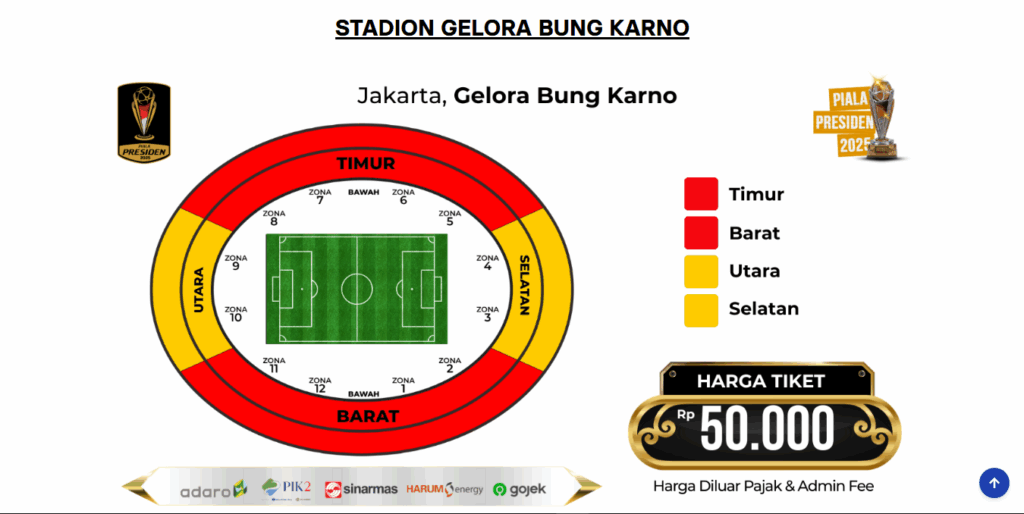 Organizing Committee (OC) Piala Presiden 2025 menyiapkan puluhan ribu tiket untuk publik. Anda bisa membeli tiket melalui situs resmi turnamen: www.pialapresiden2025.com.